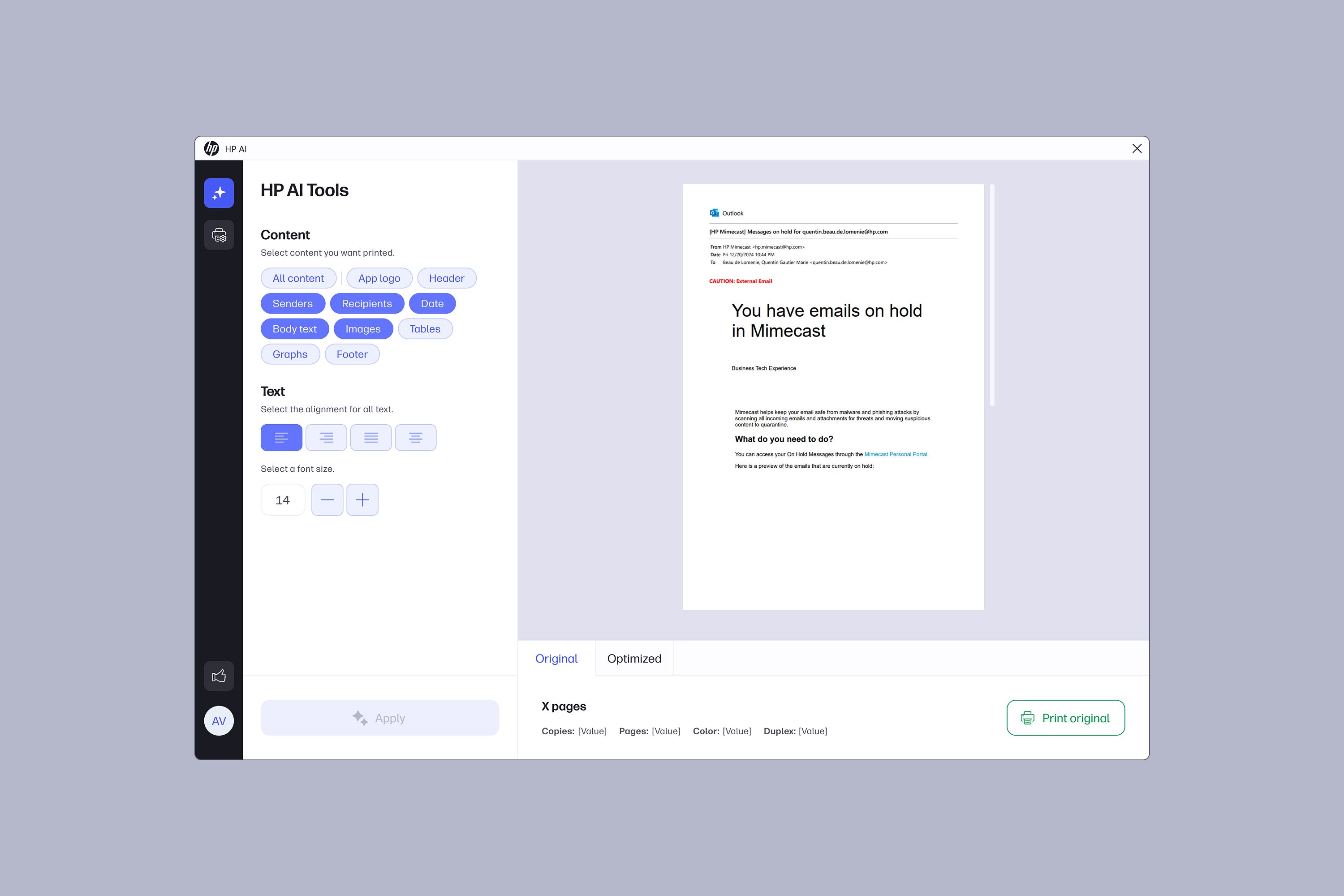 »Printing from the web has long been a frustrating experience, involving cluttered pages, wasted paper, and orphaned lines. HP AI Print quietly fixes all of that. Using AI in a smart way, it removes irrelevant content, optimizes the layout, and delivers clean, readable results. It’s simple, free, and feels like the way printing should always have worked. HP AI Print is thoughtfully designed and rooted in user needs. It saves time, reduces waste, and demonstrates that even small, overlooked problems deserve smart solutions. HP AI Print is human-centered technology at its best - subtle, effective, and genuinely helpful.«