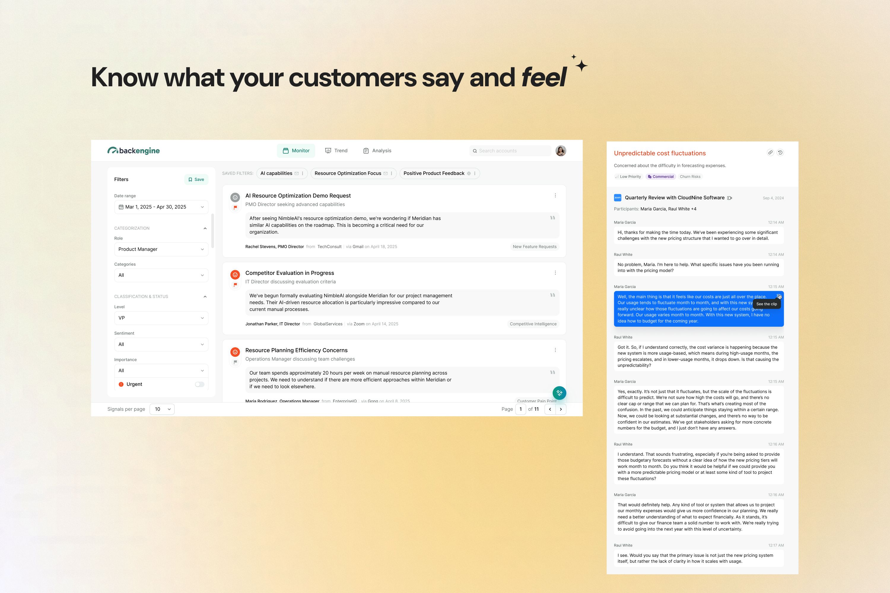 The core UX challenge was transforming massive volumes of unstructured customer communication into signals that were genuinely useful rather than abstract or misleading. Insights had to be meaningful, trustworthy, and grounded in concrete evidence, while avoiding cognitive overload.