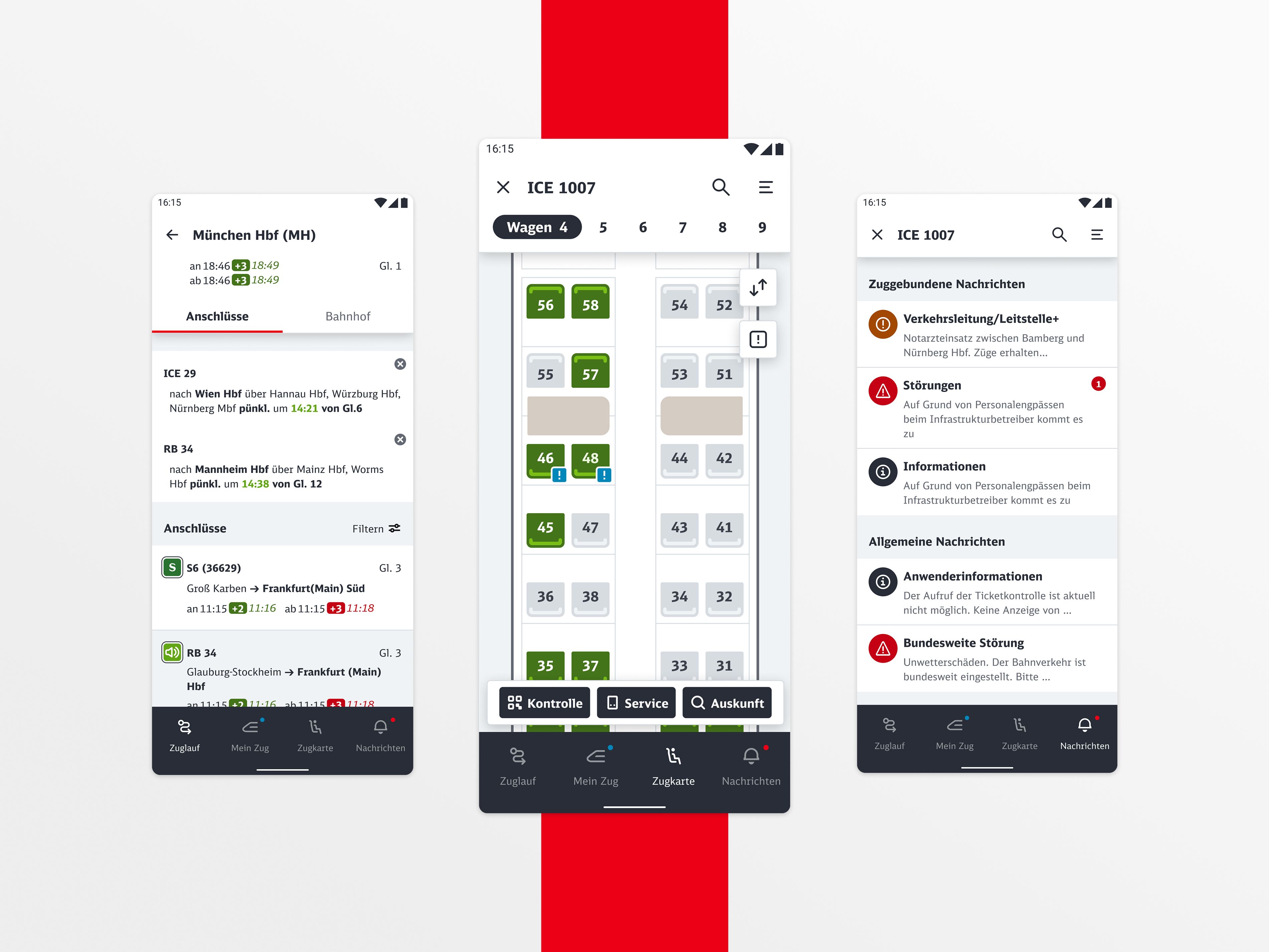 DB Communicator had to unite very different roles along one journey (on-board staff, control centers etc.) into customized user interfaces. We translated conflicting data into actionable clarity, replaced analog workarounds, and designed for time pressure, motion, and patchy connectivity with fast, forgiving interactions.