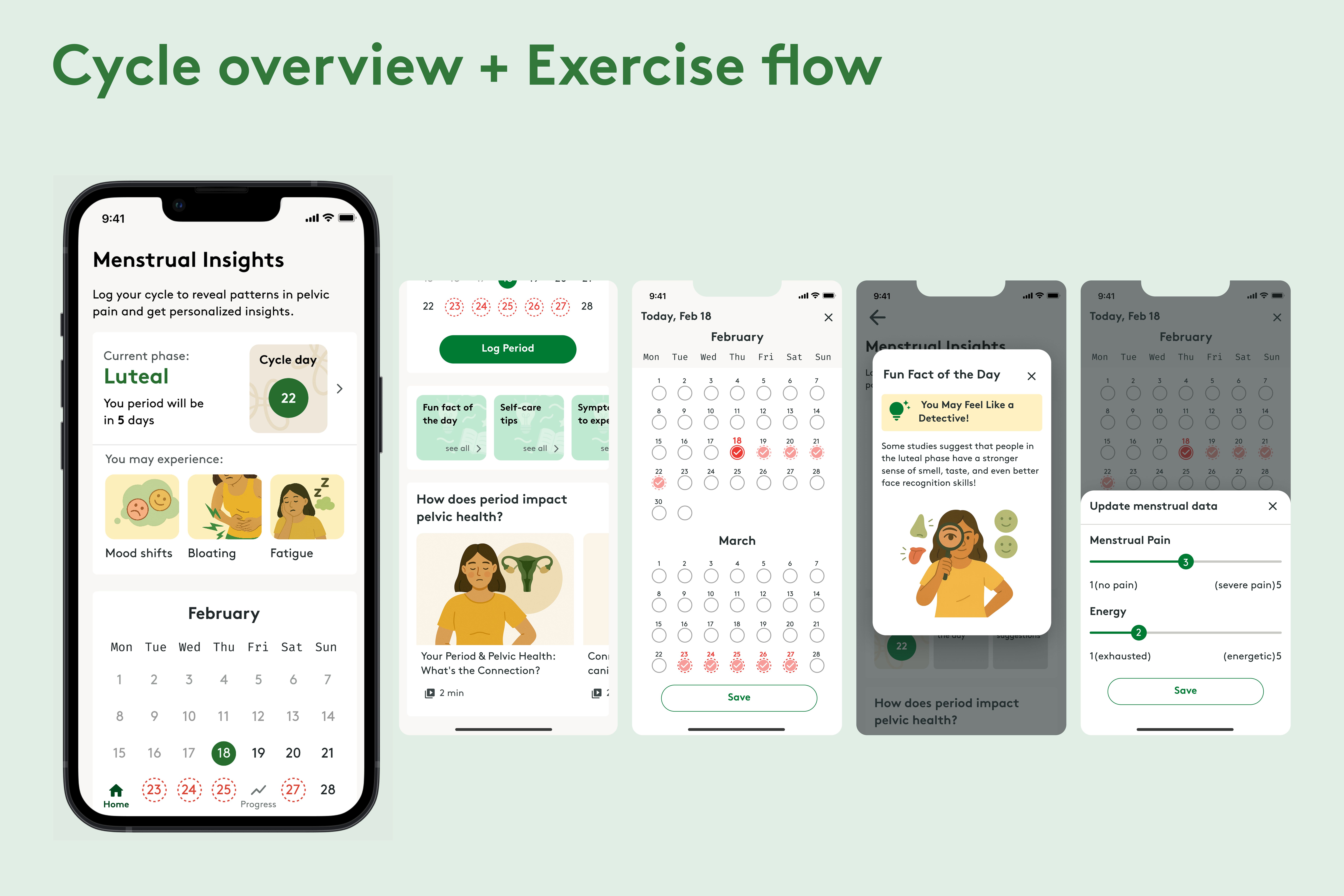 One key highlight and turning point came during concept testing. We learned users were open to AI helping them understand their body, so we planned for it to be a visible, interactive part of the product. However, testing showed most participants preferred AI to operate silently in the backend, supporting decisions without requiring attention. They were comfortable with AI using their personal information, but they did not want “another chatbot.” Instead, they wanted clear, actionable insights they could use, like what to expect in a cycle phase and how that should impact their exercises. This became the foundation for our UX approach, emphasizing user control and trust.