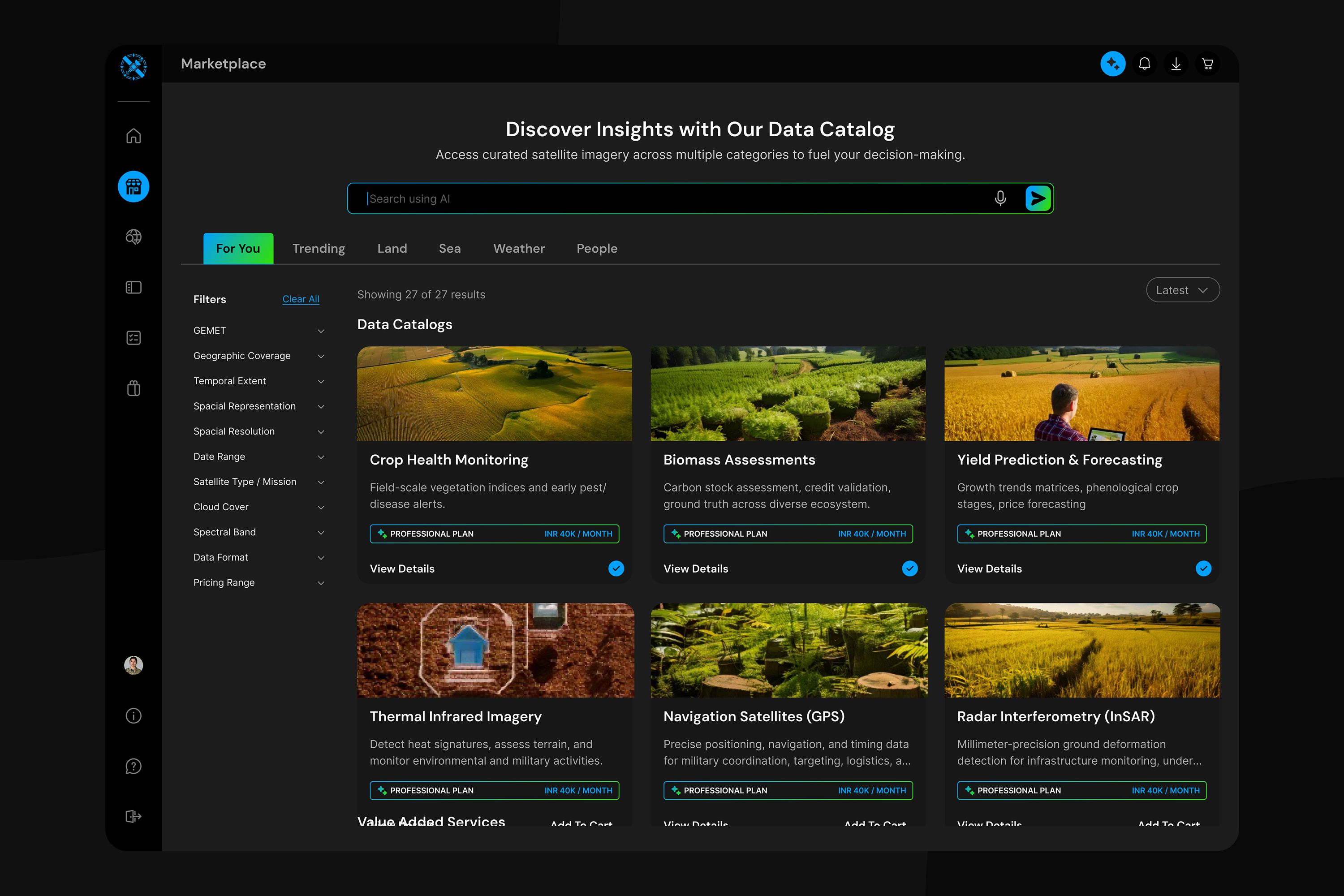 The core UX challenge of InfySpace was designing clarity within an environment defined by extreme complexity. Satellite data, multilayer geospatial inputs, and AI generated insights lacked established interaction patterns, requiring the team to craft an entirely new design language from scratch. The experience had to feel intuitive for first time users while still offering analytical depth for experts. Balancing cognitive load, guiding unfamiliar workflows, and transforming raw spatial intelligence into human readable insight formed the heart of the challenge. It also required building trust through transparent AI behavior and shaping visual structures that turned raw spatial signals into clear, confident decisions.