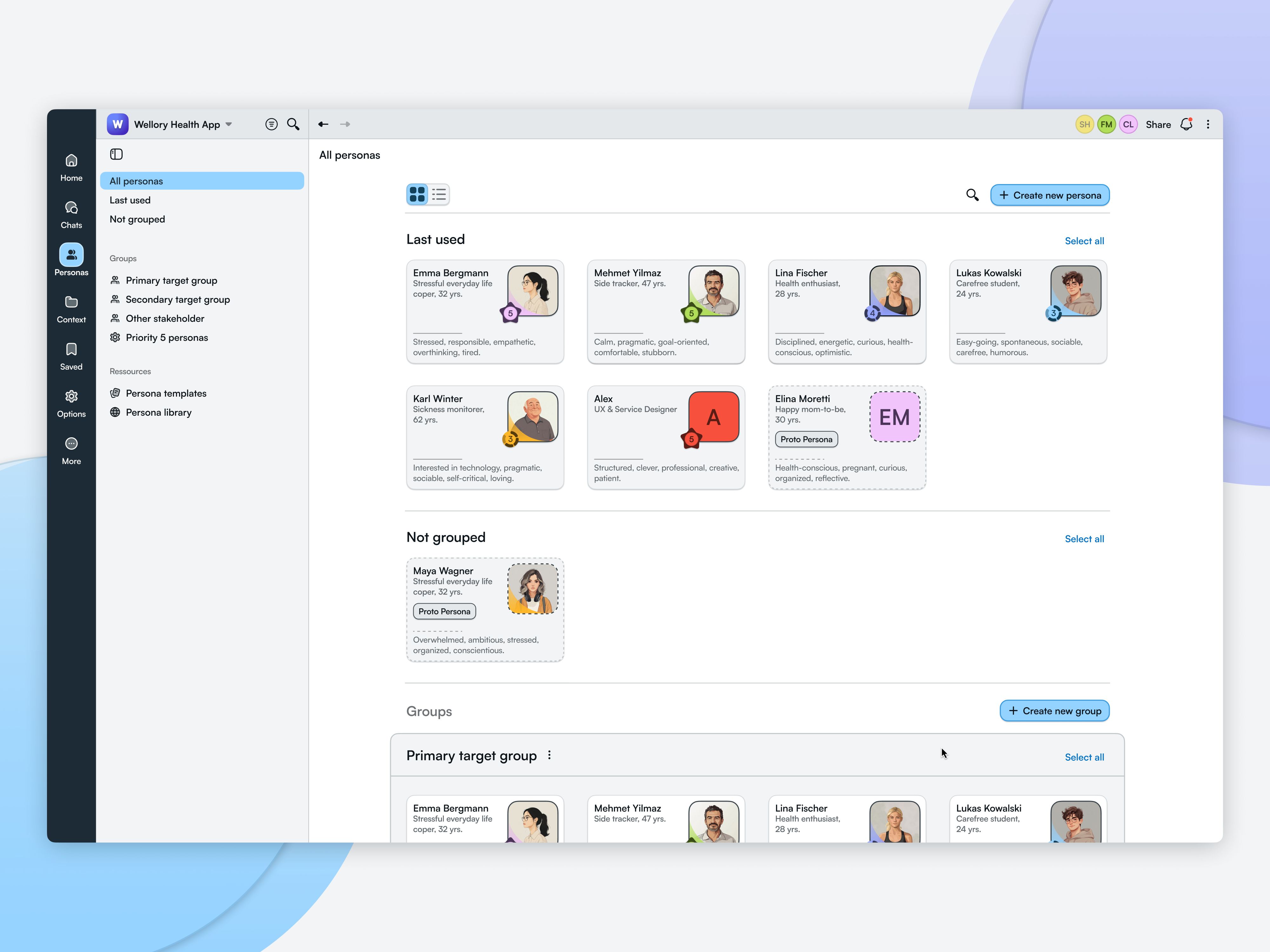 A particular highlight was the positive response during user testing to the different display modes for the AI-personas’ answers. Participants reported that these views provided quick orientation and made connections visible, exactly what the feature was intended to achieve. Different display modes were favored by different users, making it especially important to offer flexible, user-selectable options. At the same time, testing revealed a few interface ambiguities, which I was then able to address. An important aha!-moment was realizing that AI-personas should not replace user involvement but instead support and strengthen real user research, as an evolution of classic, static personas rather than a substitute for genuine user research.